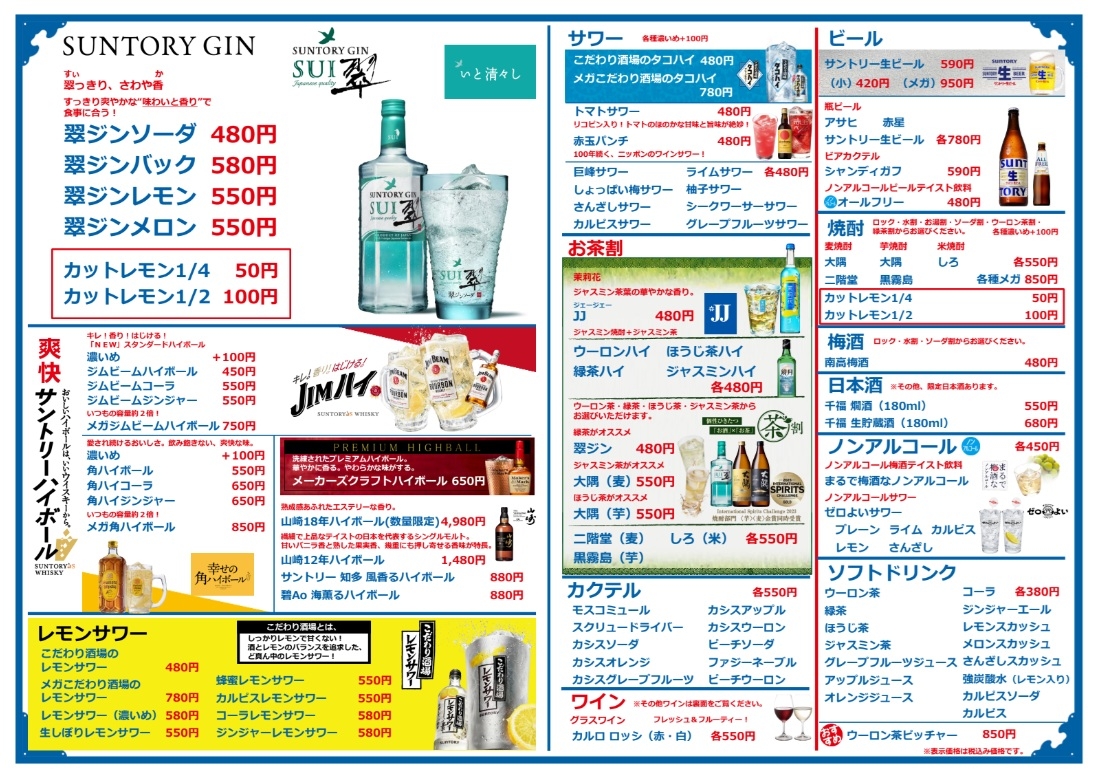 ドリンクメニュー